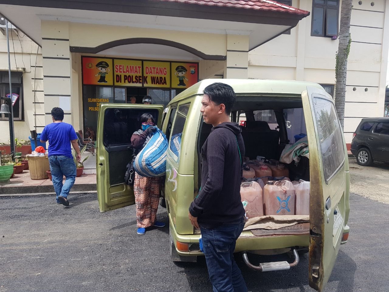 Di atas mobil, petugas menemukan 26 jerigen yang berisikan ballo.