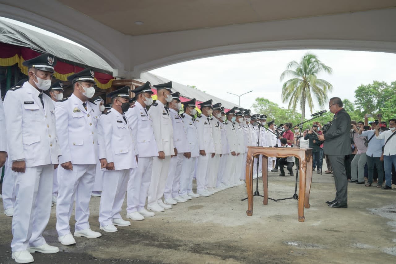 LUWU, LAYARNEWS.ID — Sebanyak 90 orang Kepala Desa (Kades) terpilih pada pemilihan kepala desa serentak tahun 2022 resmi dilantik dan diambil sumpah/janjinya oleh Bupati Luwu, Dr H Basmin Mattayang, di aula rumah jabatan Bupati Luwu, Kelurahan Pammanu Kecamatan Belopa Utara