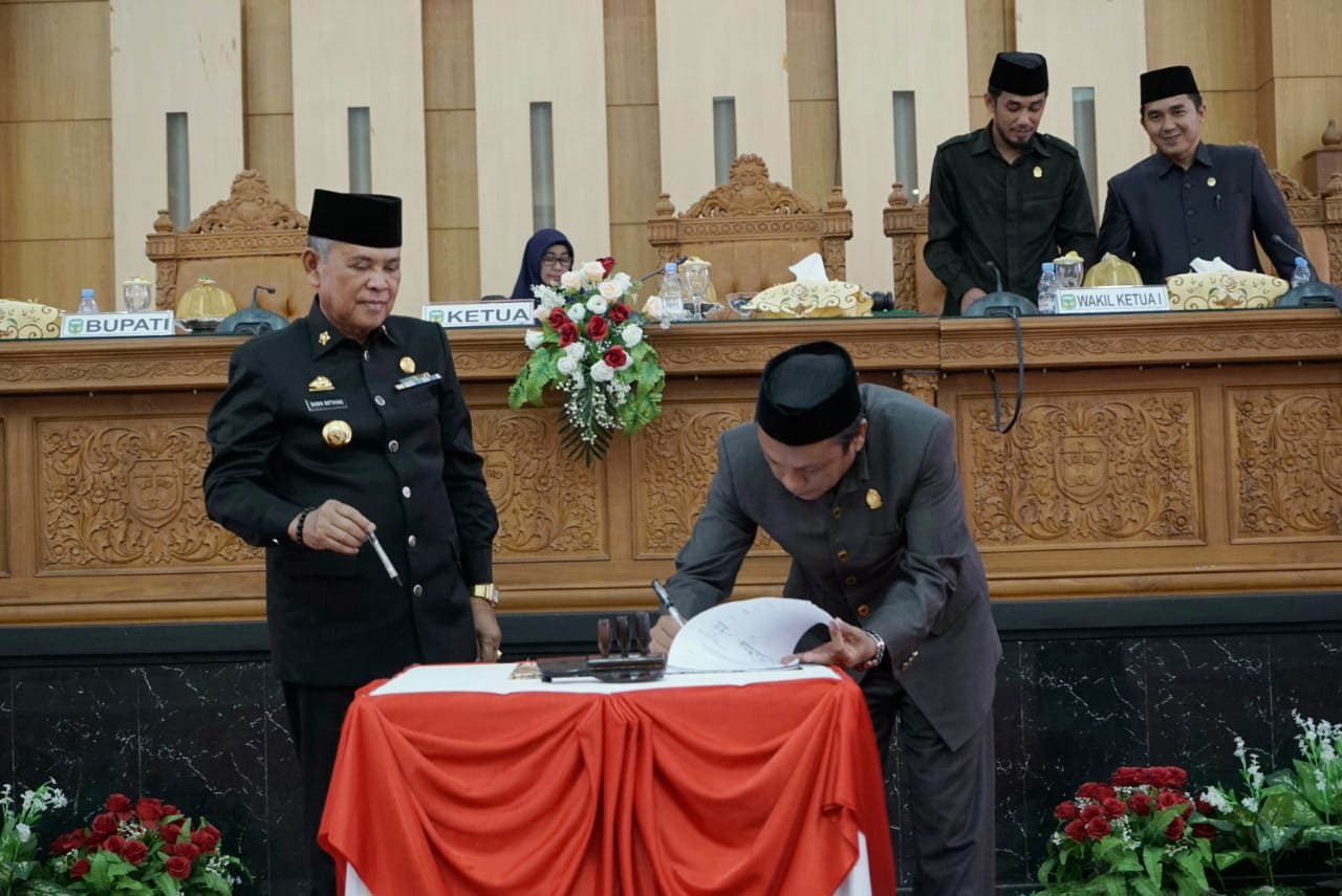LUWU, LAYARNEWS.ID — Ketua Dewan Perwakilan Rakyat Daerah (DPRD) Kabupaten Luwu, Rusli Sunali dan Bupati Luwu, Dr H Basmin Mattayang melakukan penandatangan persetujuan bersama ranperda perubahan APBD Kabupaten Luwu Tahun Anggaran 2022.