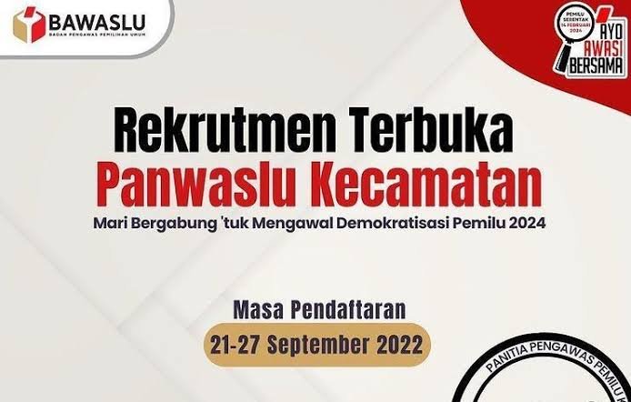 “Sesuai surat keputusan Ketua Badan Pengawas Pemilihan Umum RI, jadwal Rekrutmen Panwascam untuk Pemilu 2024, akan dibuka pada tanggal 21-27 September 2022 mendatang,” pungkasnya.