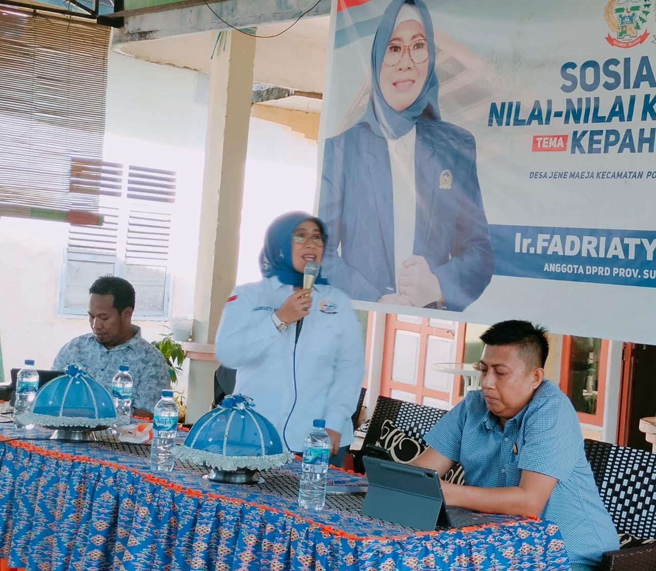 Demikian disampaikan Anggota Dewan Perwakilan Rakyat Daerah (DPRD) Provinsi Sulawesi Selatan, Fraksi Demokrat, Fadriaty As, saat menggelar Sosialisasi Nilai-Nilai Kebangsaan dengan Tema ‘Kepahlawanan’ di Desa Jenne Maeja, Kecamatan Ponrang Selatan, Kabupaten Luwu, Provinsi Sulawesi Selatan, Sabtu 12 November 2022.