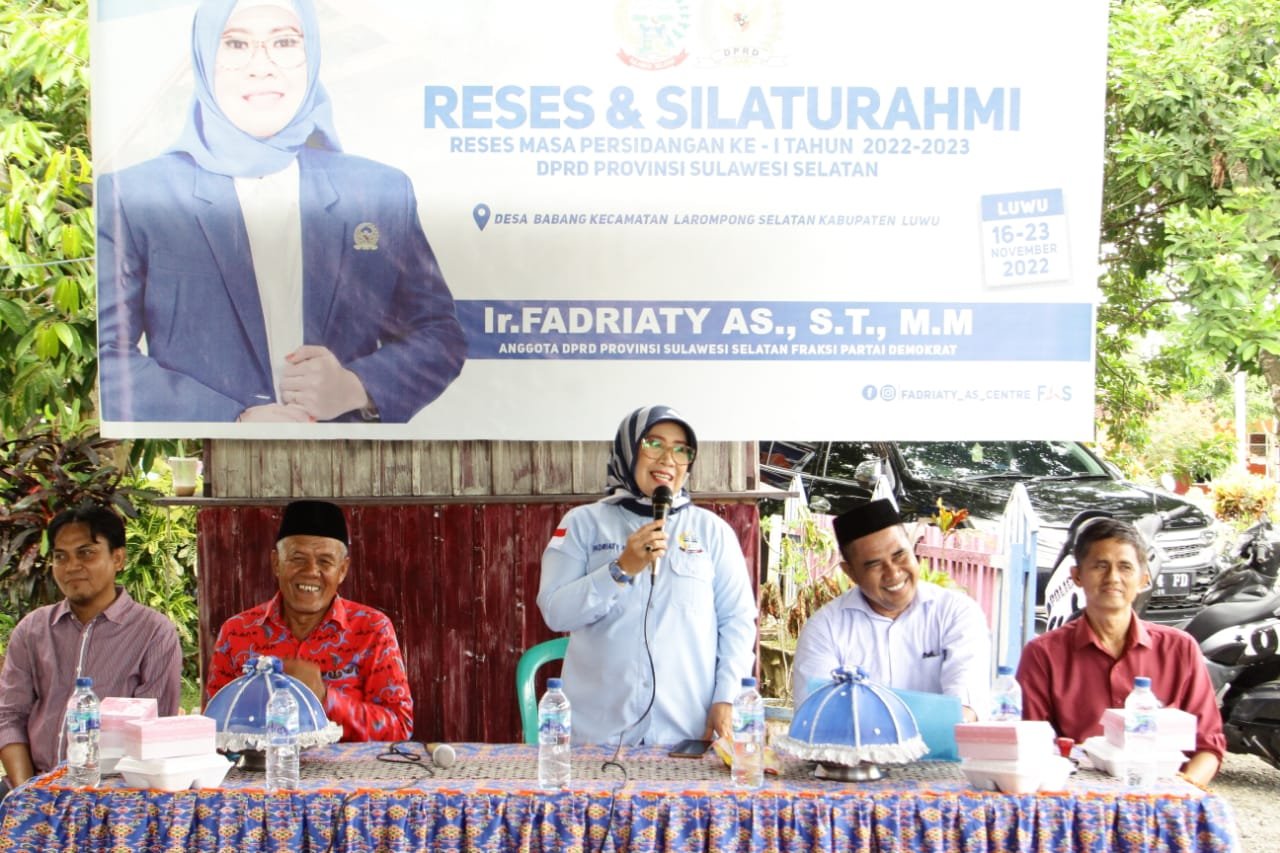 LUWU, LAYARNEWS.ID — Anggota DPRD Provinsi Sulawesi Selatan Fraksi Demokrat, Fadriaty Asmaun menggelar Reses Masa Persidangan I 2022 – 2023 di Desa Babang Kecamatan Larompong Selatan Kabupaten Luwu, Rabu, 16 November 2022.