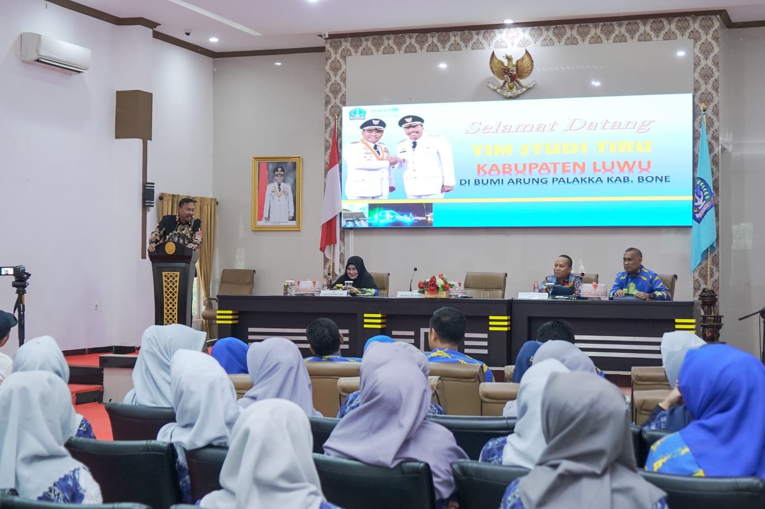 Wakil Bupati Bone, Drs. H. Ambo Dalle, M.M menerima kunjungan tersebut di Aula Rujab Bupati Bone menyampaikan apresiasinya atas kepercayaan TP-PKK Kabupaten Luwu untuk melakukan studi tiru di Kabupaten Bone.