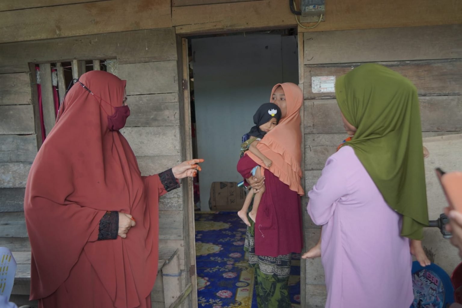 Hayarna mengunjungi langsung kediaman anak dengan kondisi gizi buruk tersebut setelah menerima laporan pada rapat pembentukan dan pelaksanaan rumah gizi PKK dalam rangka percepatan penurunan angka stunting, Rabu (12/04/2023).