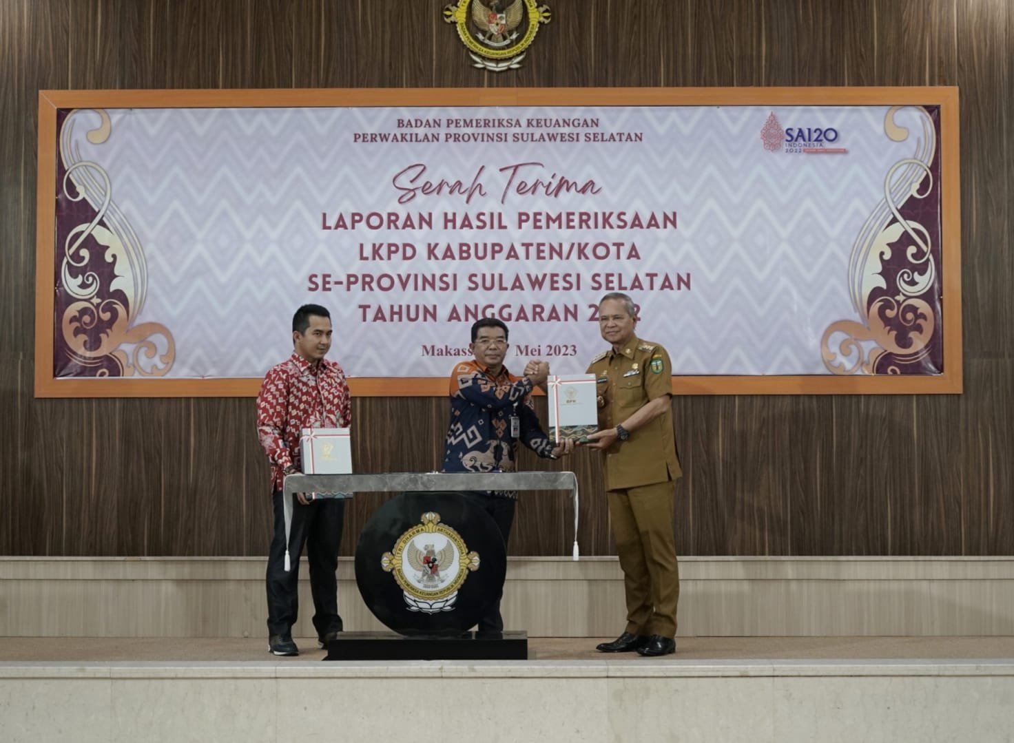 MAKASSAR, LAYARNEWS.ID — Hanya berselang 2 bulan setelah penyerahan Laporan Keuangan Daerah (LKPD) Unaudited tahun anggaran 2022 oleh Pemerintah Kabupaten Luwu, kini Badan Pemeriksa Keuangan (BPK) perwakilan Provinsi Sulawesi Selatan menyerahkan hasil Pemeriksaan LKPD tersebut kepada Bupati Luwu di aula Kantor BPK Sulsel, Jalan A.P. Pettarani, Makassar, Selasa (16/5/2023)
