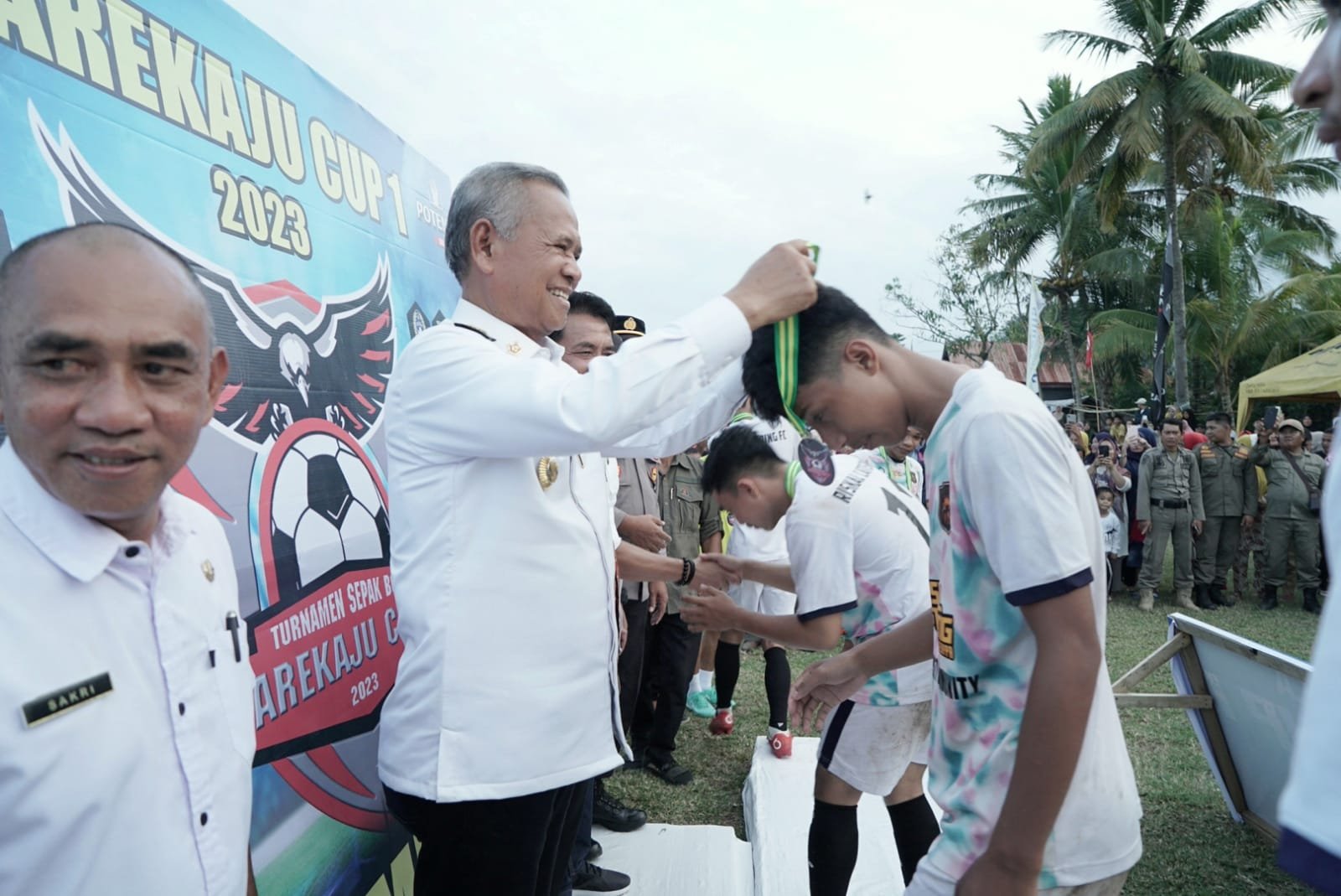 Bupati juga melontarkan pujian kepada Sirajuddin selaku Kepala Desa Parekaju yang menggagas sekaligus menggalang generasi muda untuk menyelenggarakan turnamen ini.