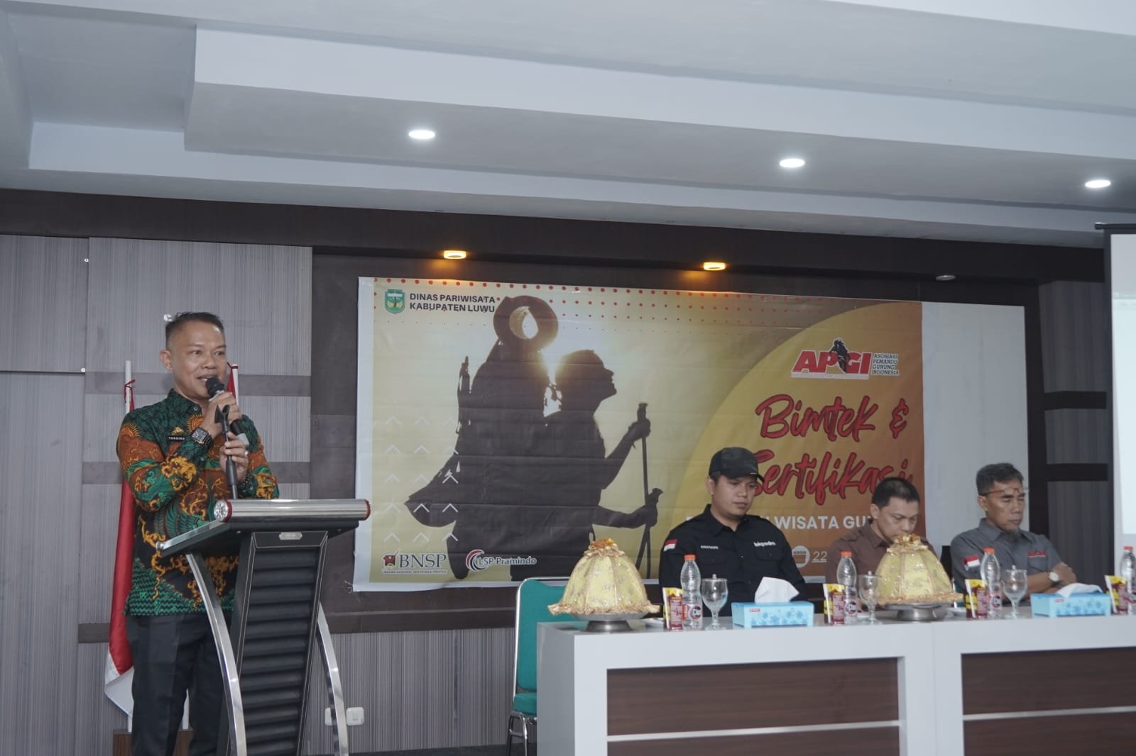 LUWU, LAYARNEWS.ID – Pemerintah Kabupaten Luwu, Melalui Dinas Pariwisata bekerjasama dengan Asosiasi Pemandu Gunung Indonesia (APGI) mengadakan Bimbingan Teknik dan sertifikasi Pemandu Wisata Gunung yang dilaksanakan di Hotel Borneo Desa Senga Selatan Kecamatan Belopa, Kamis (22/6/2023)