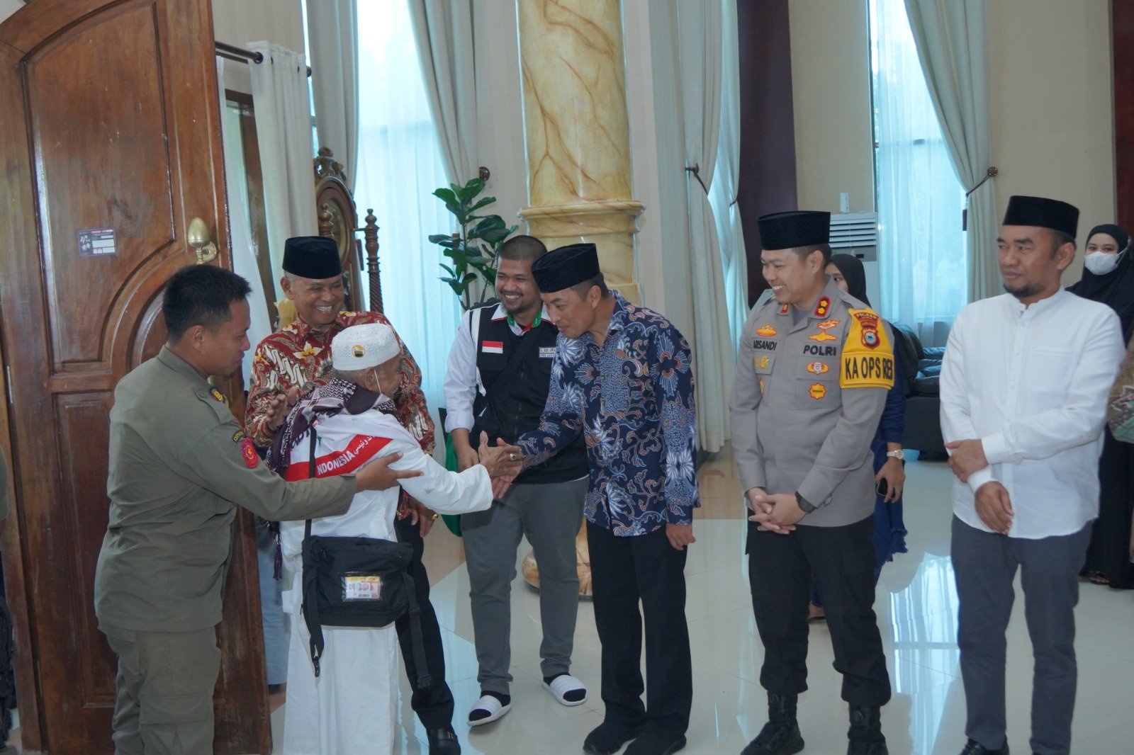 Jamaah haji tiba menggunakan 11 bus disambut ribuan keluarga jamaah yang antusias menanti di halaman sejak siang hari. Tangis dan haru tak terbendung saat jamaah haji bergantian turun dari bus dan masuk ke aula rujab Bupati Luwu.