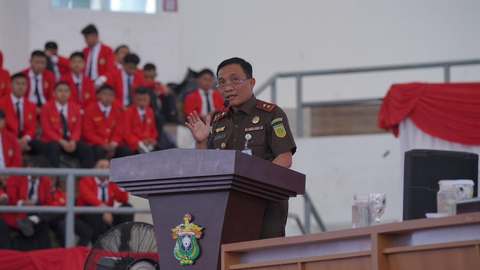 MAKASSAR, LAYARNEWS.ID — Kepala Kejaksaan Tinggi Sulawesi Selatan Leonard Eben Ezer Simanjuntak membawakan kuliah umum pada kegiatan Pengenalan Kehidupan Kampus Bagi Mahasiswa Baru (PKKMB) Universitas Hasanuddin Tahun 2023. di JK Arenatorium/Gelanggang Olah Raga (GOR) Universitas Hasanuddin (UNHAS), Senin (14/082023)