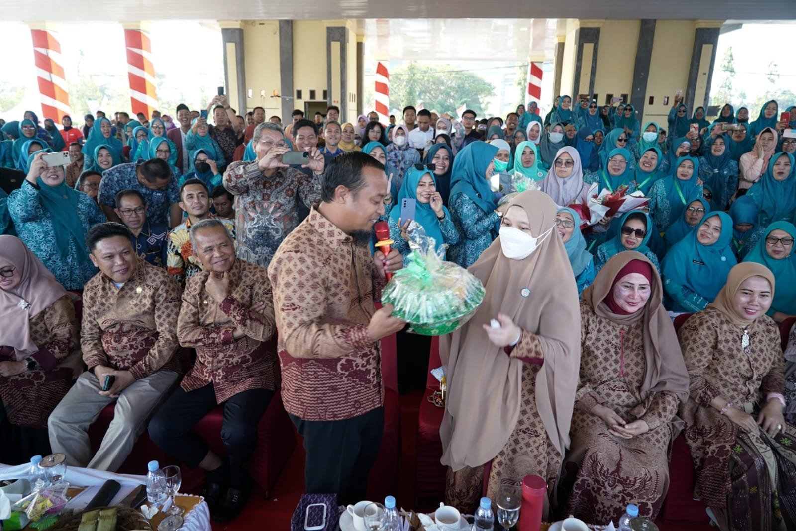 “ini tahun kedua kita laksanakan Jambore PKK, kemarin kita laksanakan di Kabupaten Selayar, dan hari ini saya juga ingin mengucapkan terima kasih kepada ibu Bupati Luwu. Beliau kami percayakan karena saya yakin jika ibu bupati semangat, bapak Bupati Luwu pasti ada disampingnya,” canda H. Andi Sudirman Sulaiman