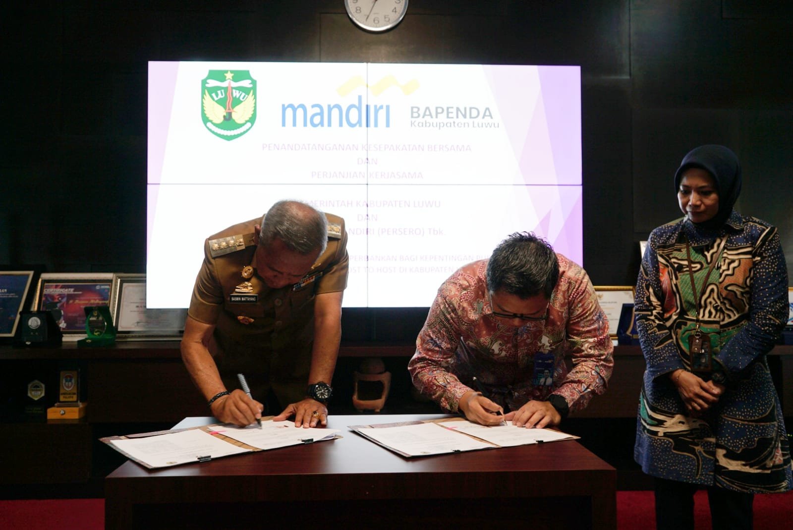 Penandatanganan Kesepakatan Bersama dan Perjanjian Kerjasama Pemerintah Kabupaten Luwu bersama PT. Bank Mandiri (Persero) Tbk ini dikhususkan dalam bidang pengembangan layanan perbankan melalui mekanisme Host To Host di Kabupaten Luwu
