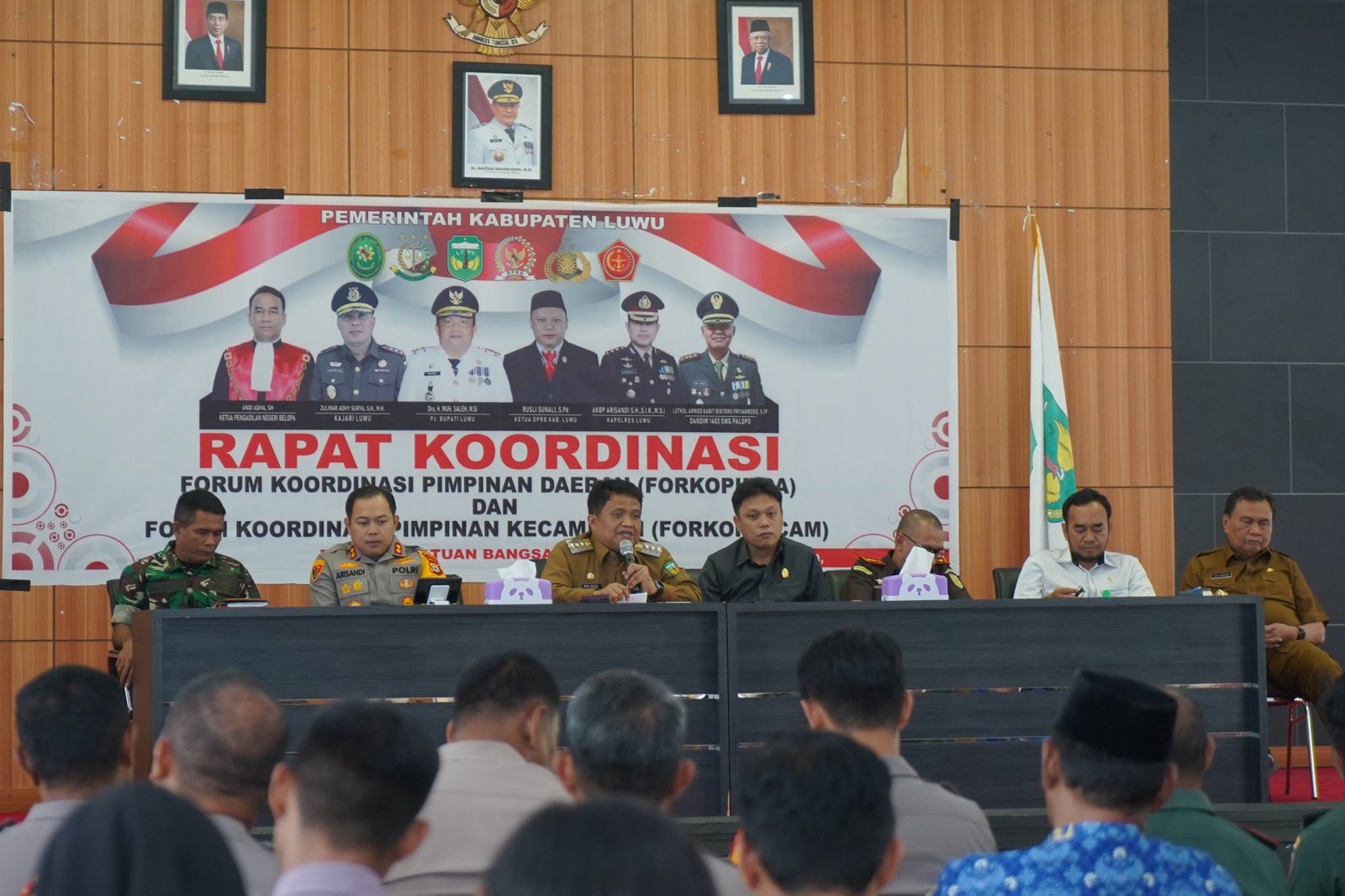 LUWU, LAYARNEWS.ID – Penjabat Bupati Luwu, Drs. H. Muh. Saleh, M.Si secara resmi membuka kegiatan Rapat Koordinasi Pemerintah bersama Forum Koordinasi Pimpinan Daerah (Forkopimda) Kabupaten di aula Andi Kambo, kompleks perkantoran Bupati Luwu, Senin (18/3/2024).