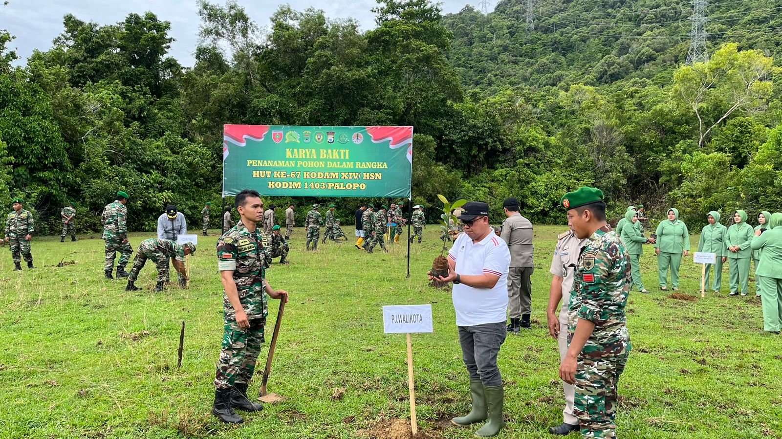 PAlopo, LayarNews.ID  – Pj. Wali Kota Palopo, Asrul Sani, SH., M.Si, melakukan penanaman pohon dalam rangka HUT ke-67 Kodam XIV/Hsn Kodim 1403 Palopo.