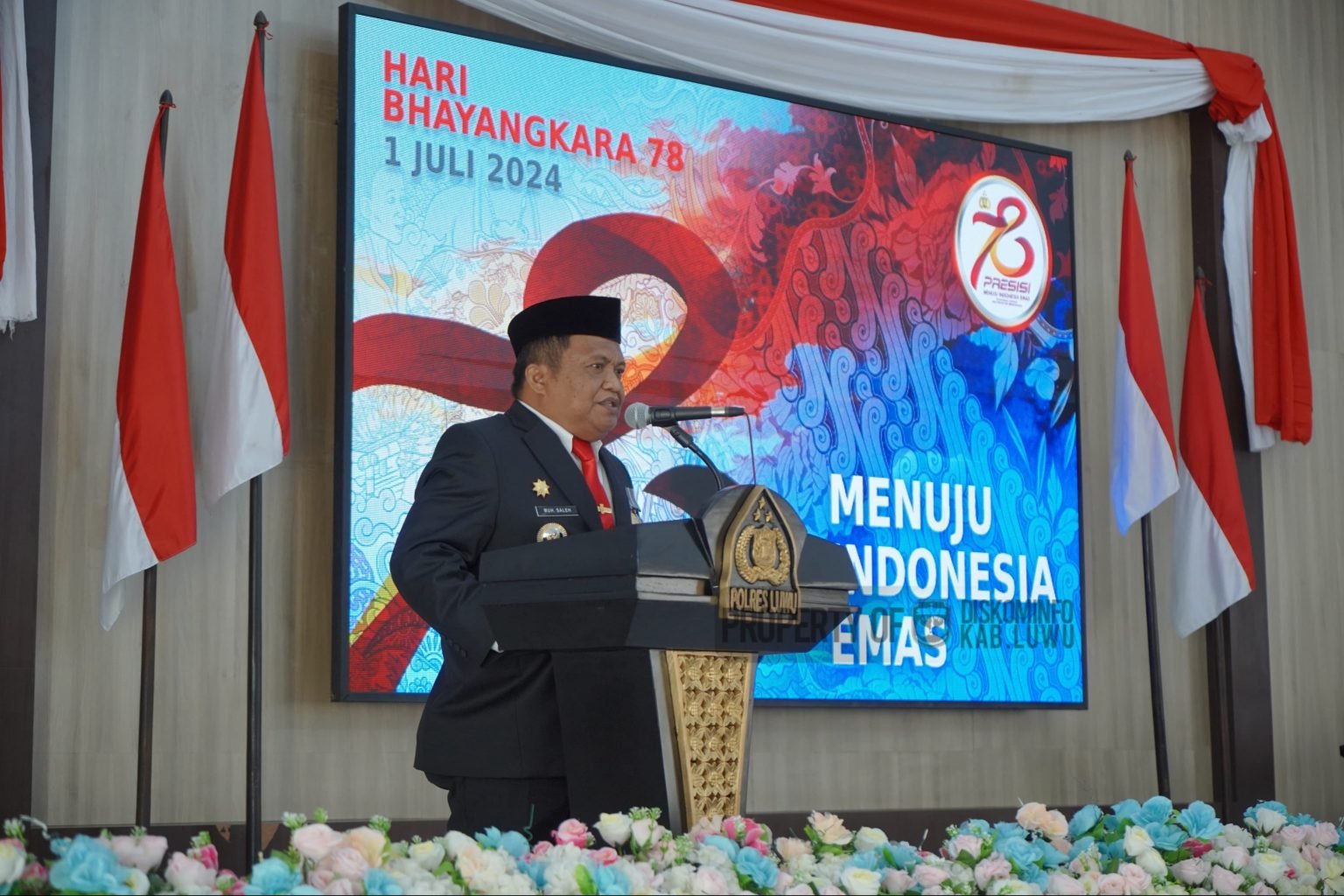 “Atas nama Pemerintah Kabupaten Luwu, saya mengucapkan Selamat Hari Bhayangkara ke 78, terima kasih atas kinerja Polri, semoga semakin presisi dalam rangka mengemban tugas menuju Indonesia Emas,” ucap Pj Bupati Luwu.