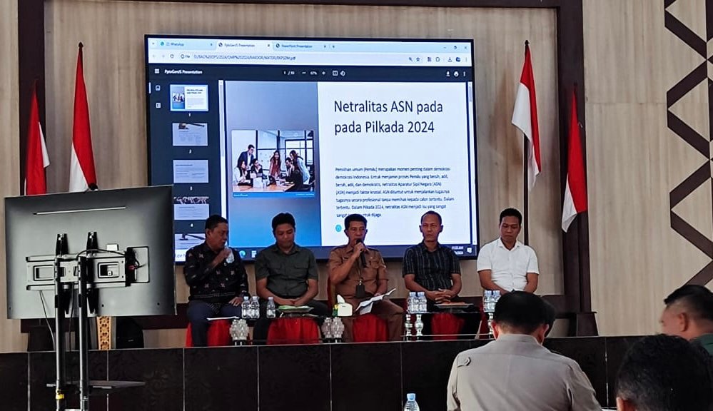 “Dimana ASN harus menjalankan tugas-tugasnya tanpa memihak kepada paslon tertentu. Hal ini sesuai dengan ketentuan dalam Undang-undang Nomor 5 Tahun 2014 dan Permendagri Nomor 6 tahun 2018 yang mengatur prinsip-prinsip netralitas ASN dalam konteks pemilu,” tandasnya.