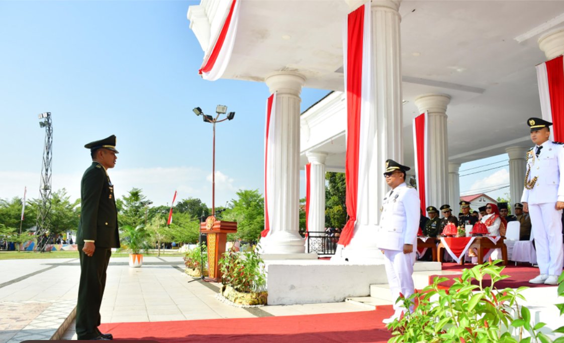 Upacara HUT RI lingkup Pemerintah Kota Palopo dipusatkan di Lapangan Pancasila, Sabtu (17/08/2024), yang dipimpin Komandan Upacara, Danramil Wara Palopo, Kapten Inf. Agus Purwono.