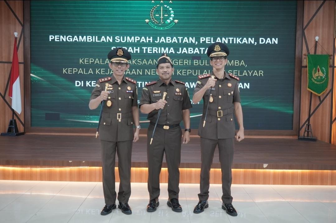 MAKASSAR, LAYARNEWS.ID — Kepala Kejaksaan Tinggi Sulawesi Selatan Agus Salim melantik Kajari Bulukumba dan Kajari Selayar. Pelantikan tersebut dirangkaikan Upacara Pengambilan Sumpah dan Serah Terima Jabatan, bertempat di Baruga Adhyaksa Kejati Sulsel, Kamis (29/8/2024).