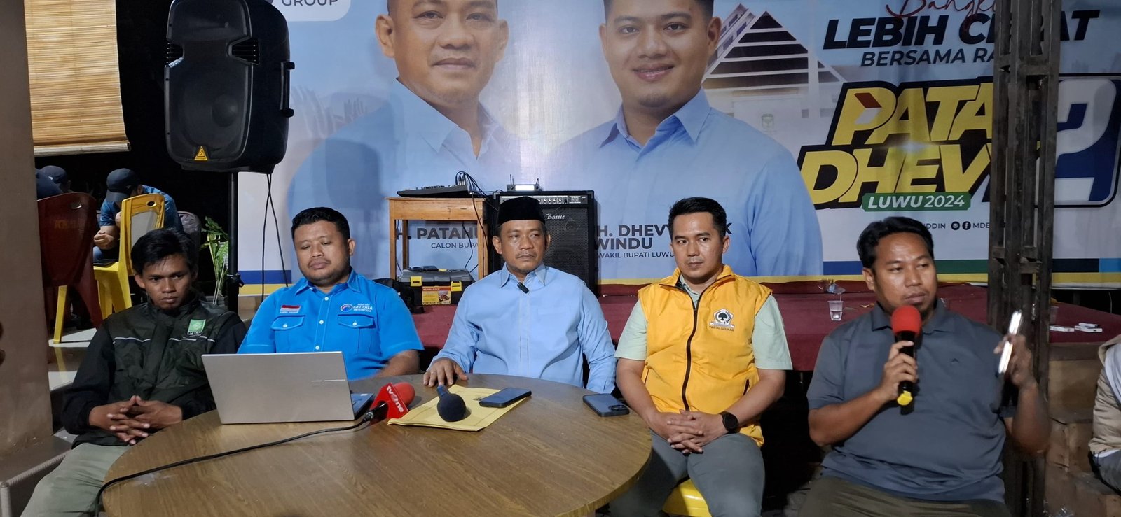 Hal ini sehubungan dengan hasil hitung cepat versi Rumah Data Pata-Dhevy yang memberikan keunggulan signifikan Paslon Nomor 2 Pata-Dhevy dari 2 Paslon yang menjadi rivalnya di Pilkada Luwu 2024