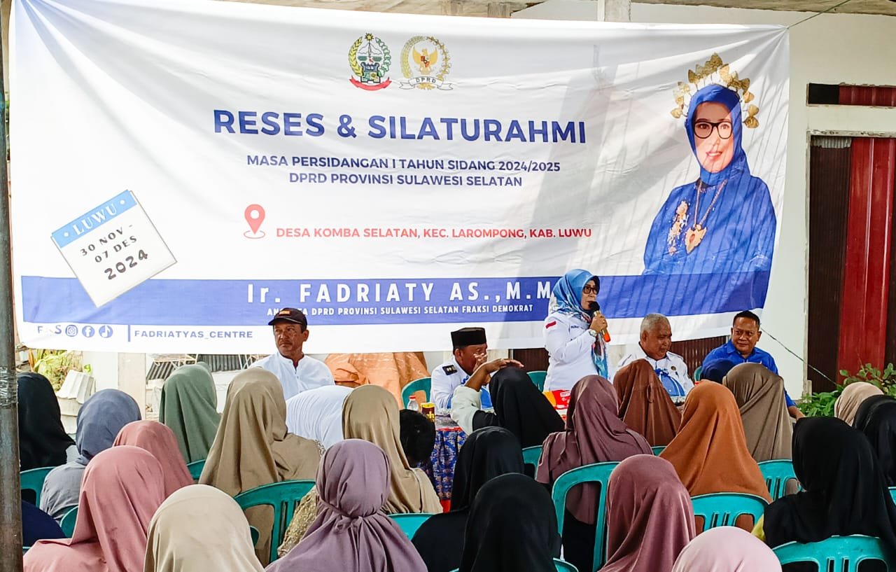 LUWU, LAYARNEWS.ID – Anggota DPRD Provinsi Sulawesi Selatan Fadriaty AS melaksanakan reses perdananya masa sidang pertama di Desa Komba Selatan pada Rabu 4 Desember 2024. Desa Komba Selatan merupakan titik keempat lokasi reses anggota DPRD 3 periode ini di Dapil 11 Provinsi Sulawesi Selatan.