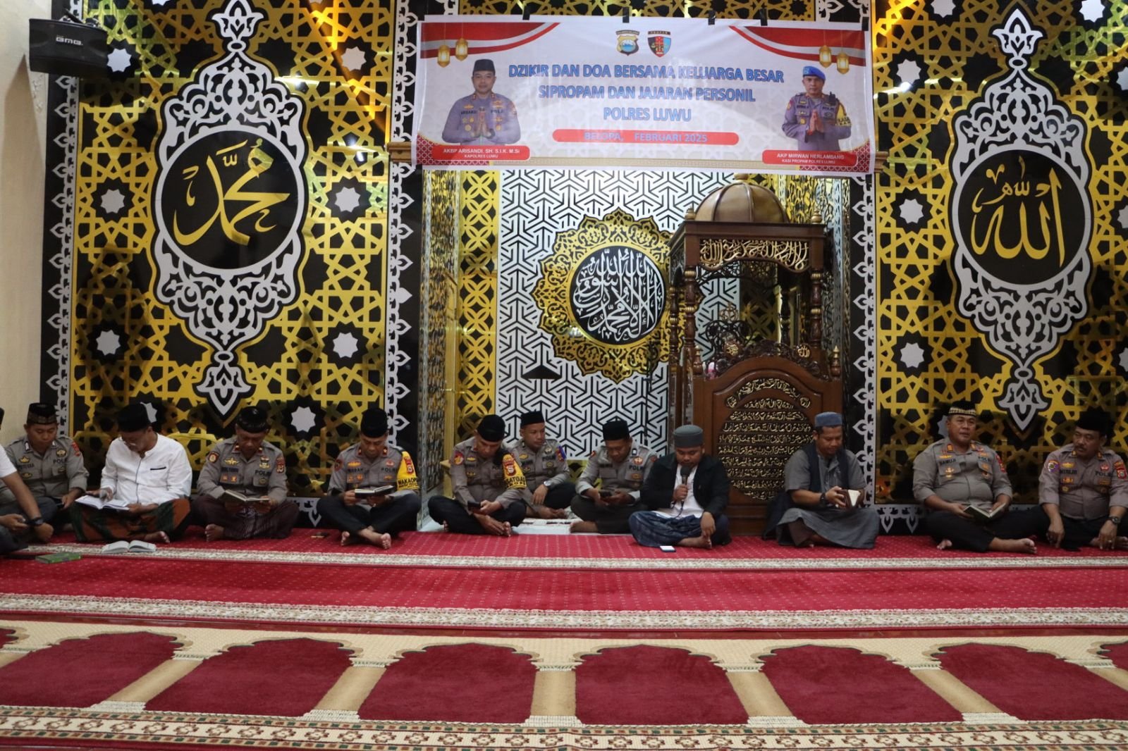 LUWU – Dalam rangka meningkatkan ketakwaan serta mendoakan keselamatan bagi anggota Polri, institusi, dan pimpinan, Seksi Propam (Sipropam) Polres Luwu menggelar dzikir dan doa bersama di Masjid Al-Ikhlas Polres Luwu. Kamis (13/2/2025).
