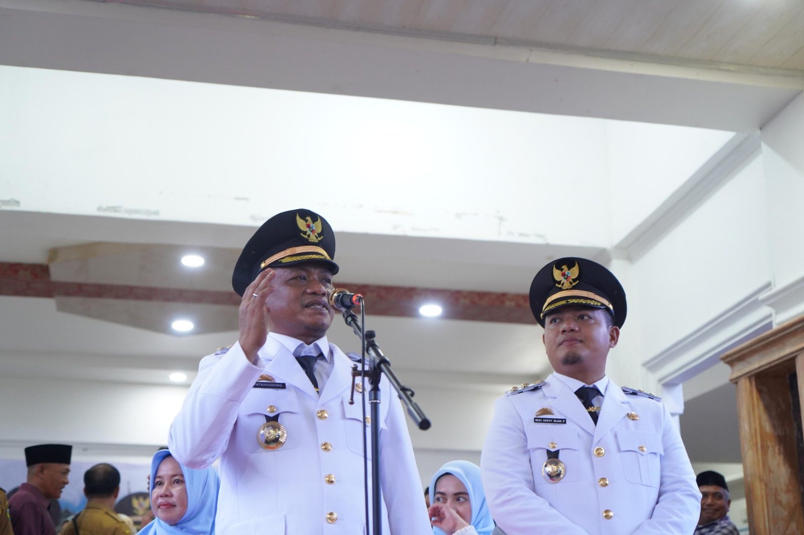 LUWU – Bupati Luwu, H. Patahudding, S.Ag dan Wakil Bupati Luwu, Muh. Dhevy Bijak Pawindu, SH tiba di Kabupaten Luwu pukul 16.00 Wita tepatnya di Batulappa Kecamatan Larompong Selatan perbatasan Kabupaten Luwu dengan Kabupaten Wajo, Senin (3/3/2025).